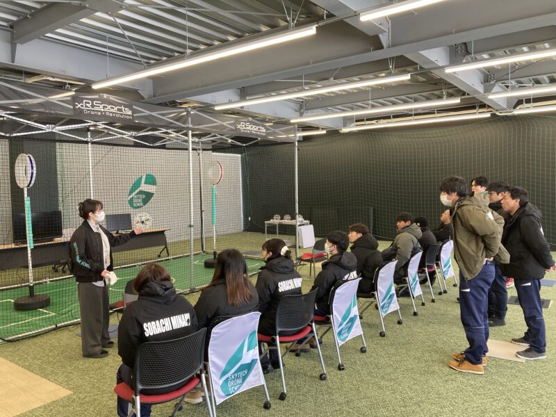 研修会では、作物が本来持つ力を引き出すバイオスティミュラント資材や、12月に受注を開始したばかりの種子処理機「Gepetto™(ゲペット)」について紹介を行いました。また、ドローンサッカーを活用し、ドローンの操縦を体験していただきました。屋外では、TECHNOLOGY FARM 西の里の敷地内にあるスマート農業の実証拠点「ELTRESアグリテックフィールド」のビニールハウスについて、越浦パイプ株式会社の社員による解説が行われました。